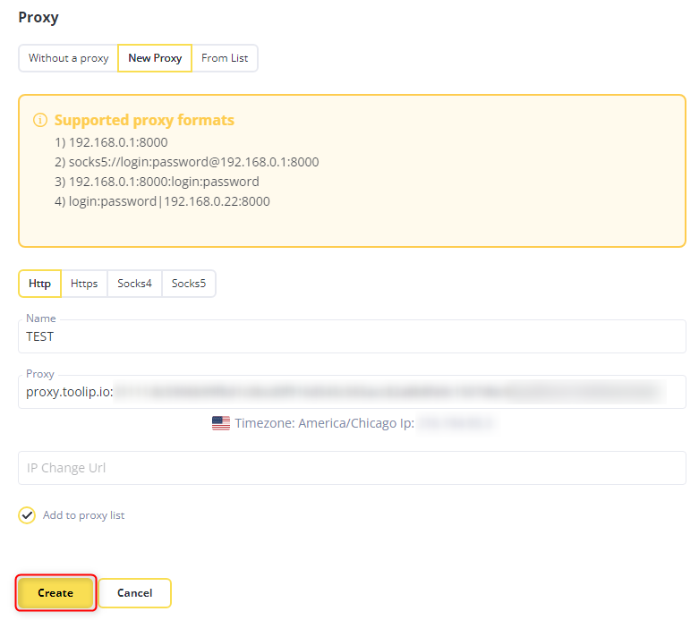 Add Your Toolip Proxy Details