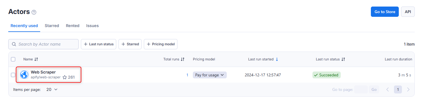 1. Log in to your Apify account using your credentials.2. From the dashboard, navigate to the Apify Store to explore available tools.3. Use the search bar or browse categories to locate the Web Scraper actor.