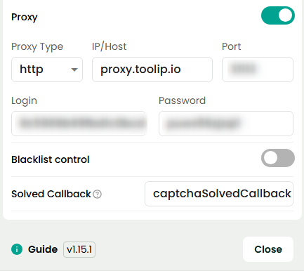 - Login: Enter your Toolip proxy username.