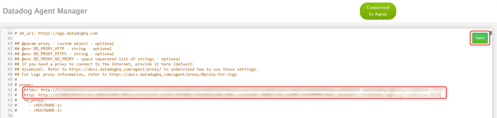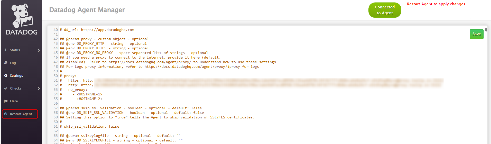 Click Restart Agent from the left menu to apply the new proxy settings.