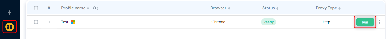 1. Navigate to the Profiles tab.2. Select your newly created profile and click Run to start browsing securely with Toolip.