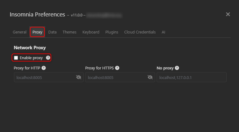 Navigate to the Proxy tab and toggle Enable Proxy to turn it on.