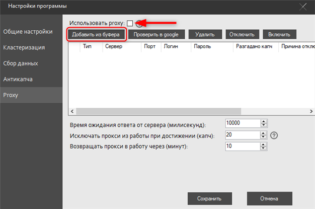 In the settings window, navigate to the Proxy section, check the box Use proxy, and click Add from clipboard.