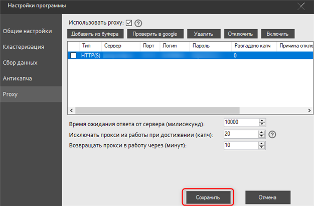 You will be redirected to the Proxy section in the main window, where the newly added proxy will be displayed. If everything is correct, click Save at the bottom of the screen to finalize the setup.