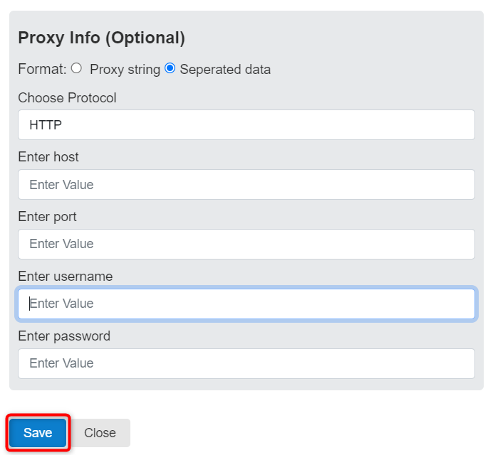 Enter the required proxy details: