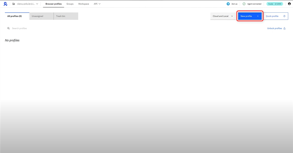 1. From the dashboard, click New Profile to initiate the creation of a virtual browser profile.