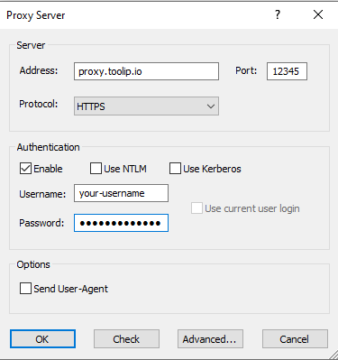 2. Enter your Toolip proxy details: