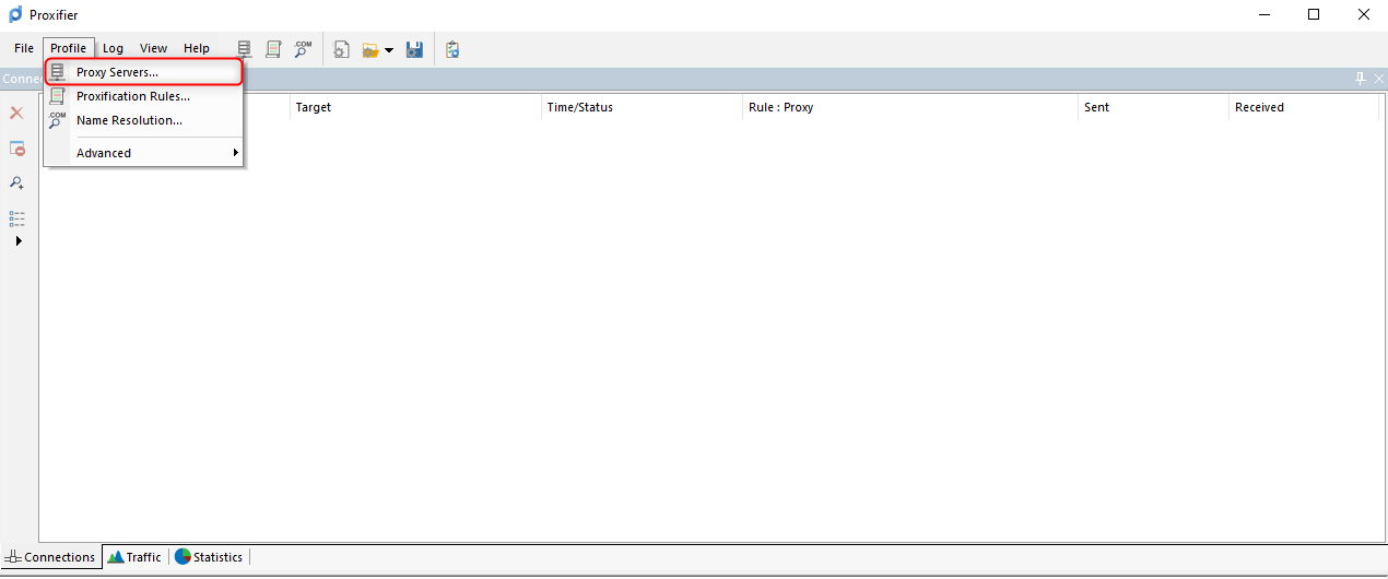1. In Proxifier, go to the Profile menu.2. Select Proxy Servers to access proxy configurations.