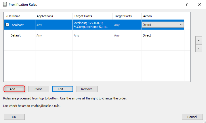 1. Click the Add button to configure a new proxy.