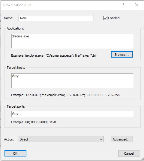 4. Click Browse and select the application you want to route through the proxy (e.g., Chrome, Firefox).
