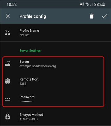 1. In the Shadowsocks window, enter your Toolip proxy details:
