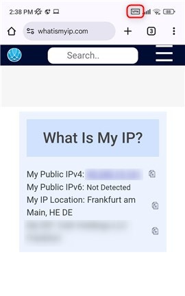 Once connected successfully, a VPN icon will appear in your device’s top bar.