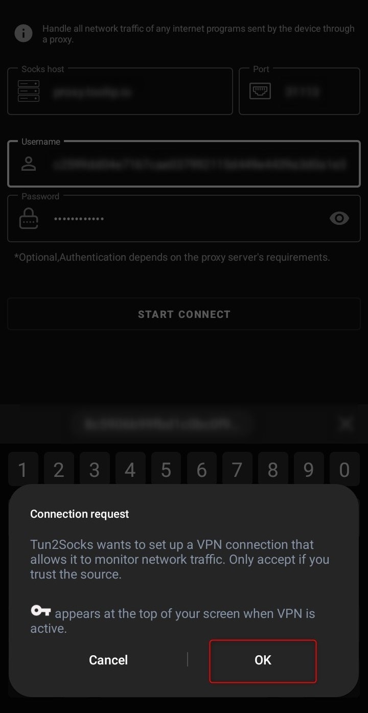 3. A prompt will appear requesting permission to set up a VPN connection. Tap OK to proceed.