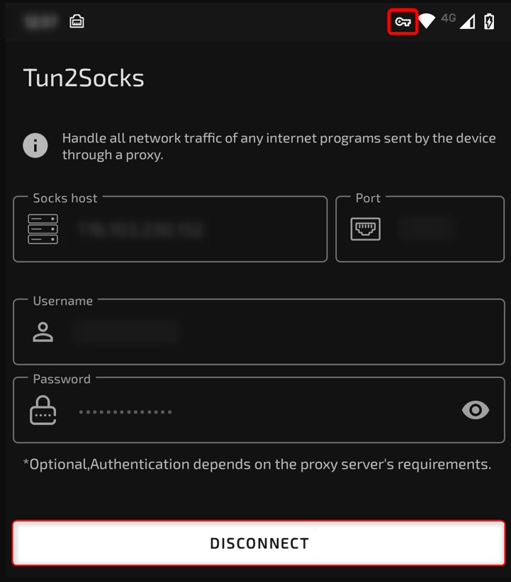 1. To stop using the proxy, simply tap Disconnect in the Tun2Socks app. This will revert your device back to its standard network connection.