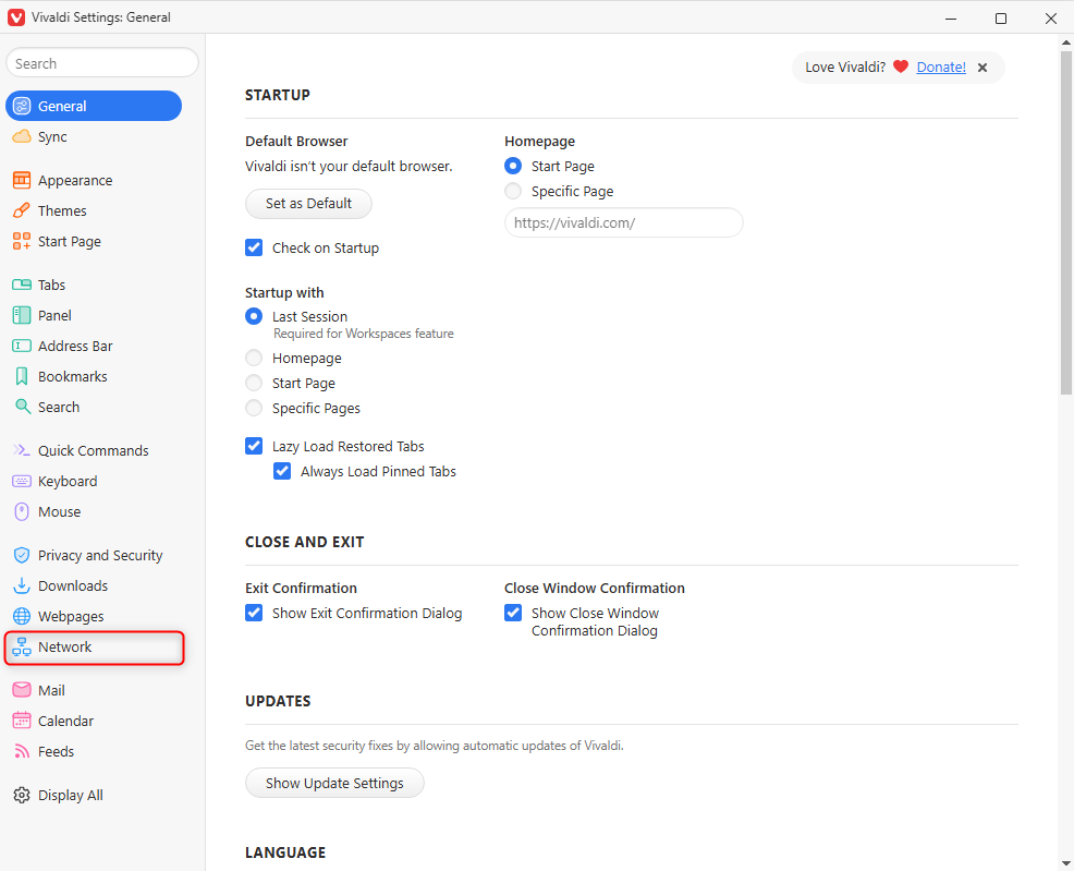 Go to the Network settings section.
