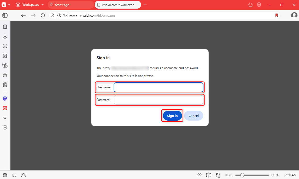Enter Proxy Credentials