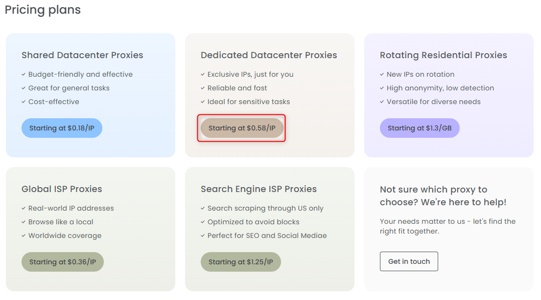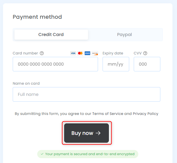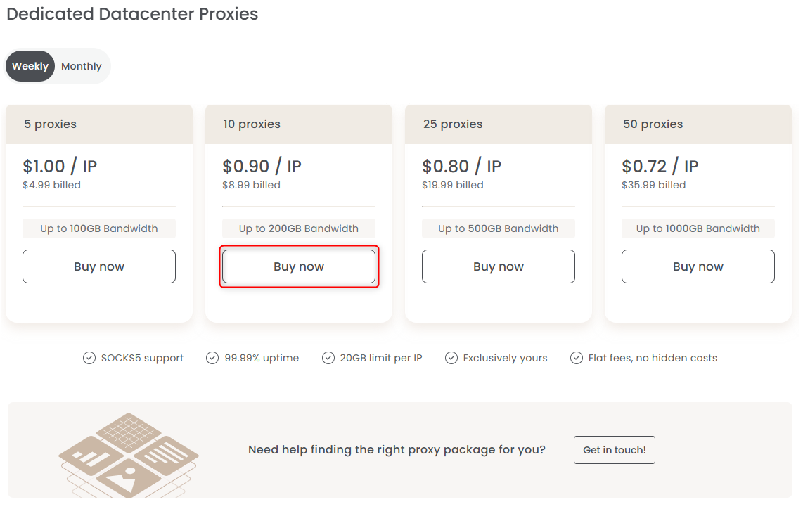 Select the plan you wish to purchase and click Buy Now to proceed.