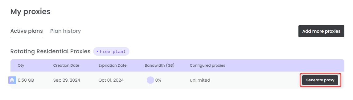 Click the Generate proxy button to create your proxy.