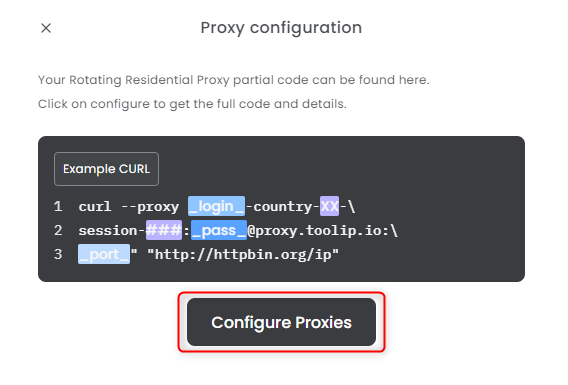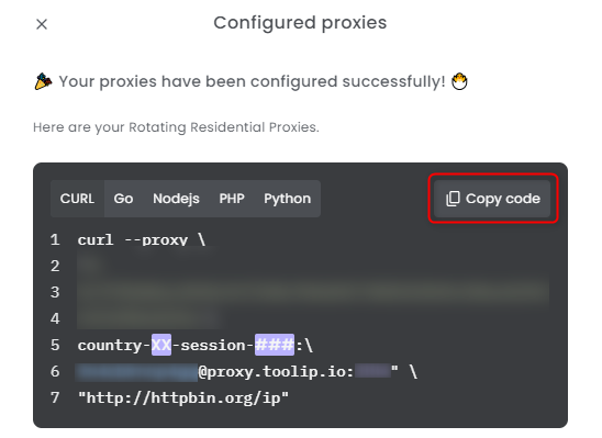 Click the Configure Proxies button to get the complete code.